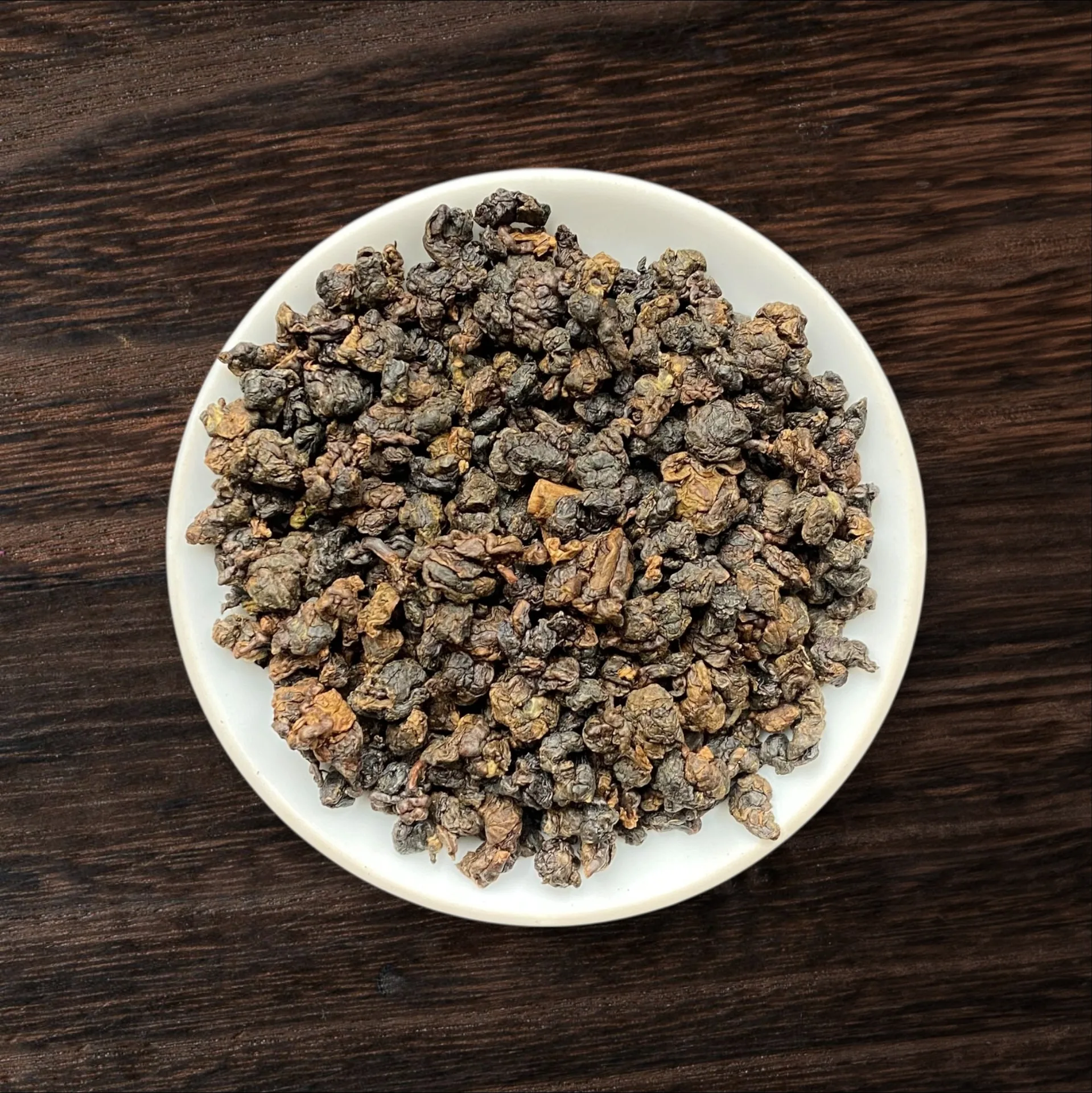 Высокогорный тайваньский улун с лёгкой обжаркой углём. Эта сложная техника подчеркивает минеральность и глубину. Настой янтарный с красным отливом, вкус красного вина, с ореховыми и дымными нотками.